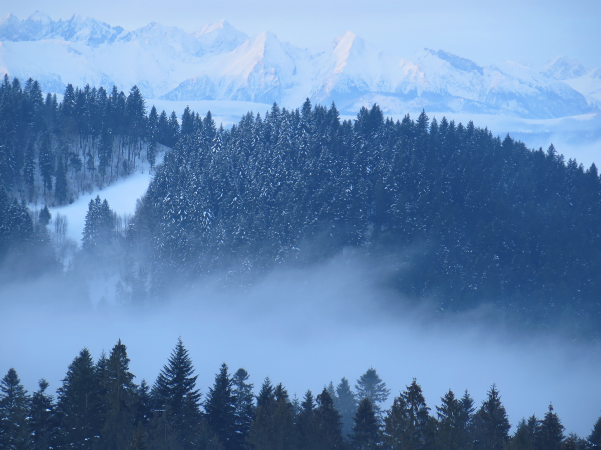 Mgły widoczne z Trzech Koron (zima)