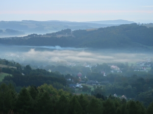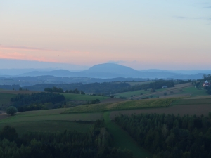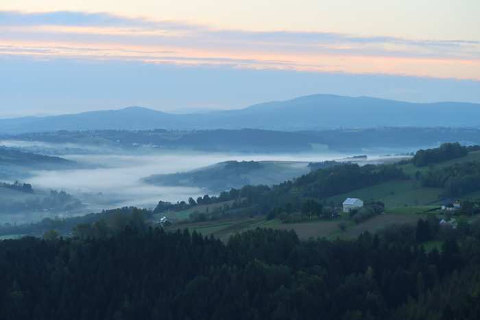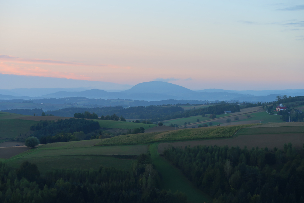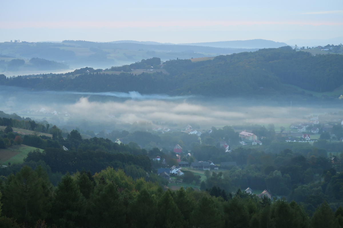Widok z wieży widokowej w Bruśniku o wschodzie Słońca