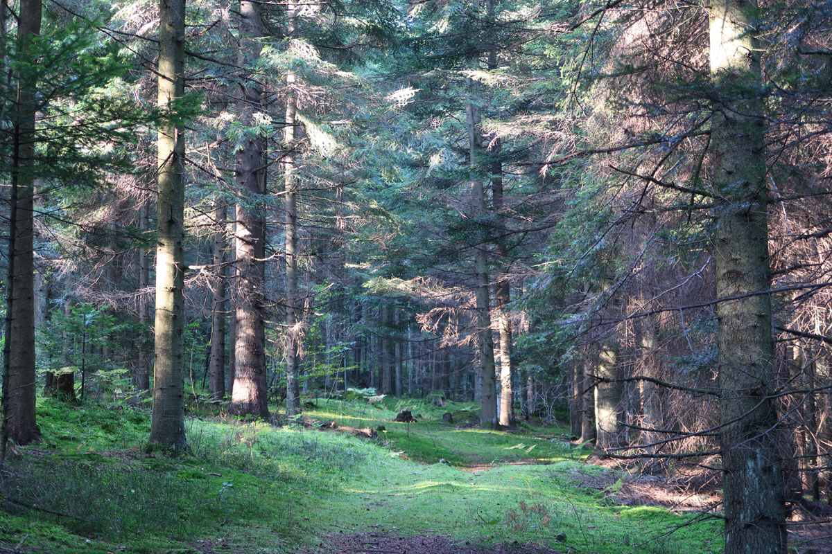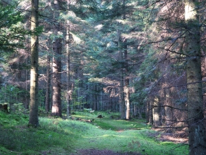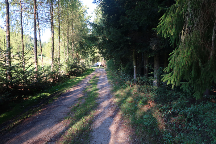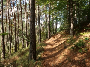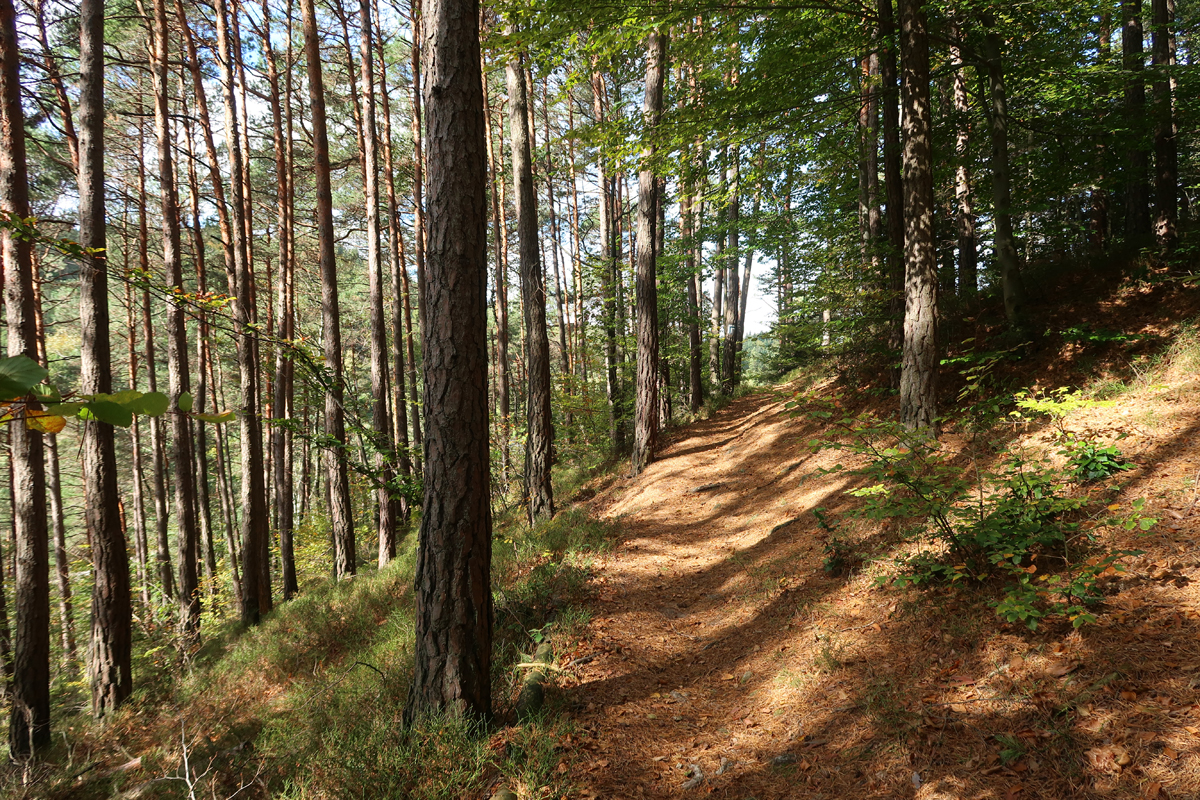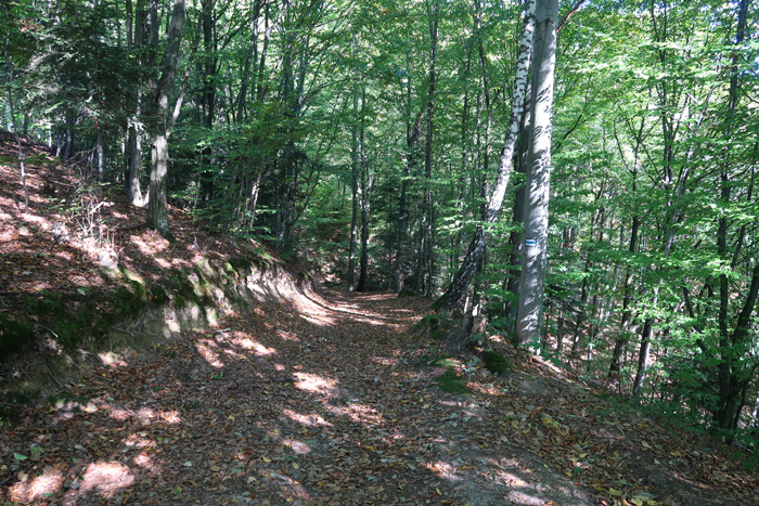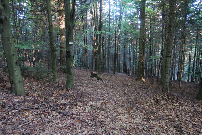 Po około 2 km szlak skręca w lewo i schodzi do lasu.