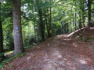 Na początku idziemy za znakami zielonymi i niebieskimi
