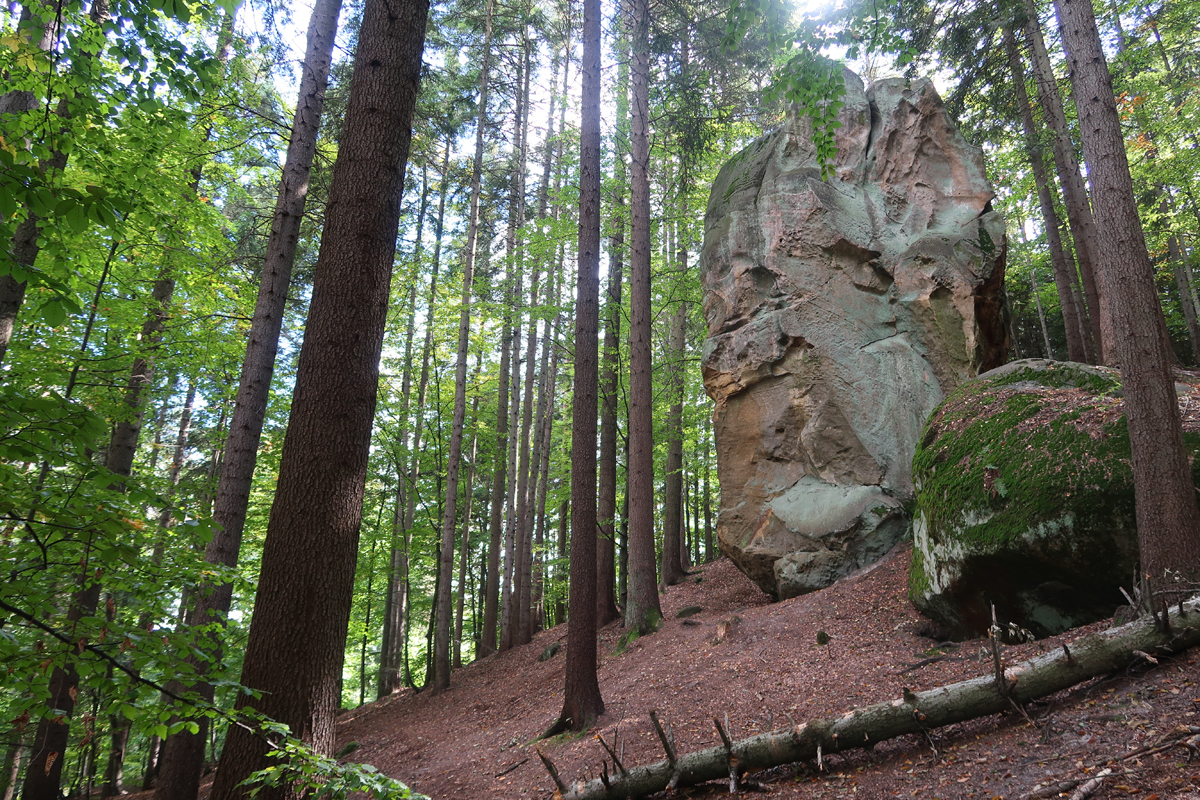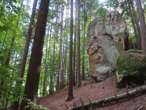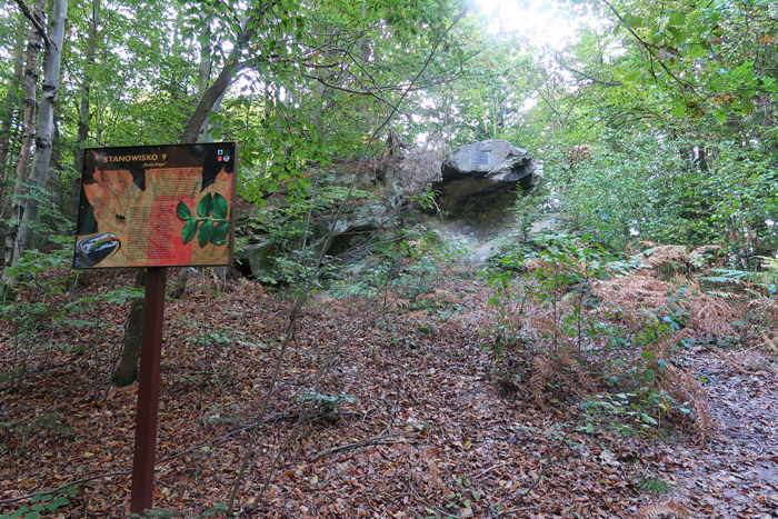 Po 700 metrach asfalt się kończy i idziemy leśną drogą. Po chwili wchodzimy do lasu. Głębiej w lesie znajdują się Skałki Siekierczyńskie. Zbudowane są z piaskowca ciężkowickiego i są typowymi ostańcami wierzchowinowymi wymodelowanymi przez erozję wietrzeniową.
