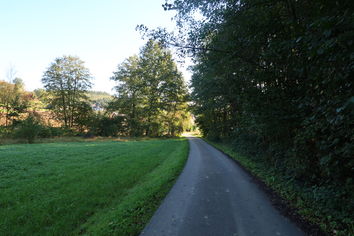 Po 3 km szlak schodzi z asfaltu. Idziemy dalej prosto przez łąki.