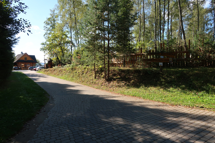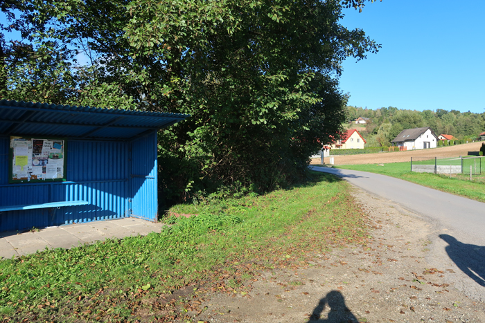 Po przejściu kilkudziesięciu metrów skręcamy w lewo obok przystanku autobusowego.