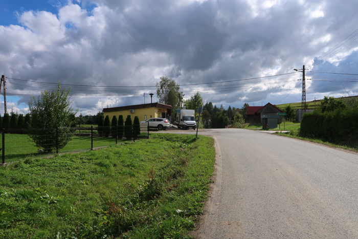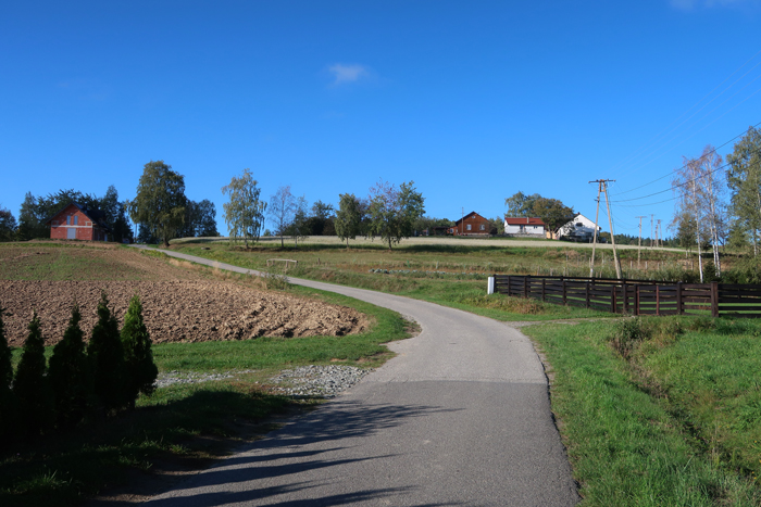 Następnie wychodzimy na asfaltową drogę i skręcamy w prawo.