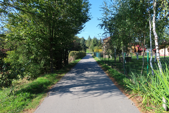 Po około 20 minutach szlak czerwony odchodzi w lewo w las a my idziemy dalej prosto asfaltem.