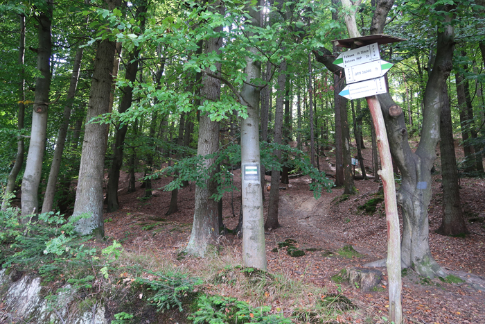 Po kilkunastu minutach docieramy do skrzyżowania szlaków. Skręcamy w prawo wraz ze szlakiem zielonym w kierunku Bobowej.