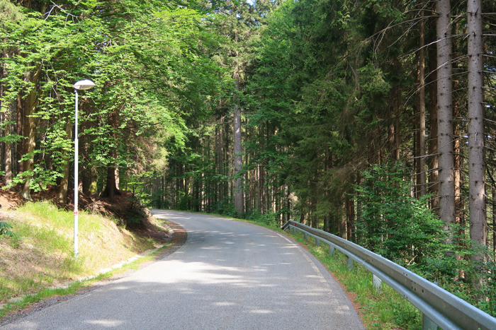 Po wyjściu ze stacji skręcamy w lewo i idziemy asfaltową szosą. Prowadzi tędy również czerwony szlak.