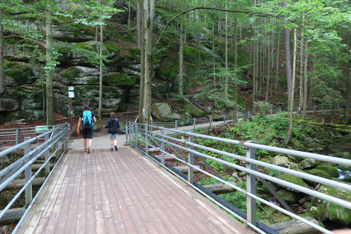 Rozpoczynamy na przystanku autobusowym Szklarska Poręba Szklarka. Znajduje się też tutaj parking przez który przechodzimy. Podążamy za znakami szlaku czarnego. Najpierw przechodzimy przez mostek nad Kamienną, a po chwili nad potokiem Szklarka.
