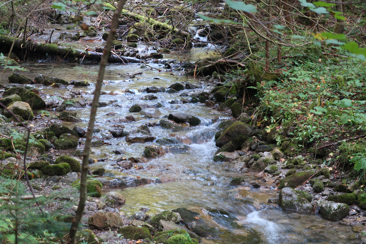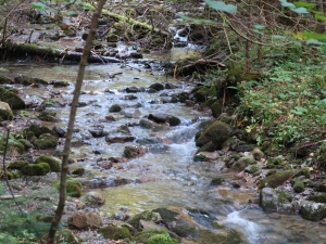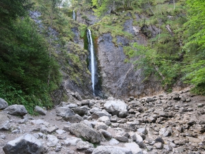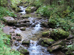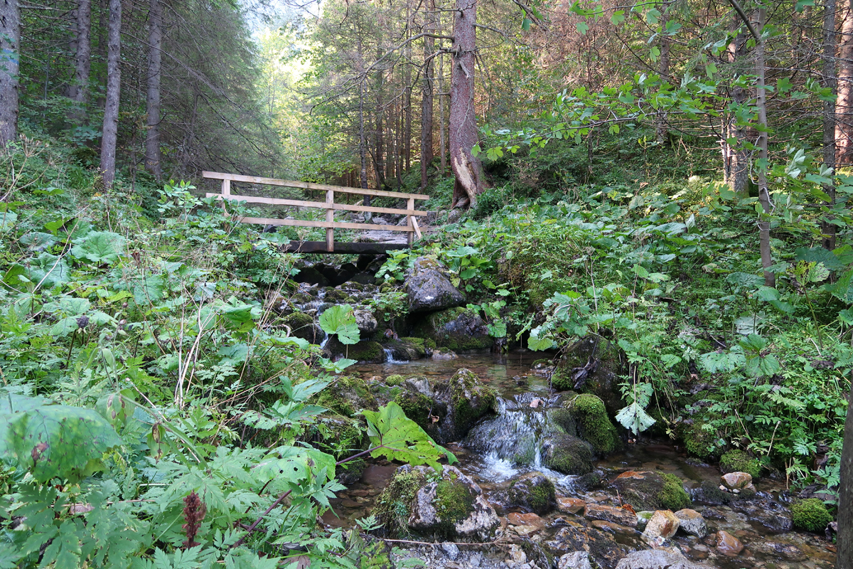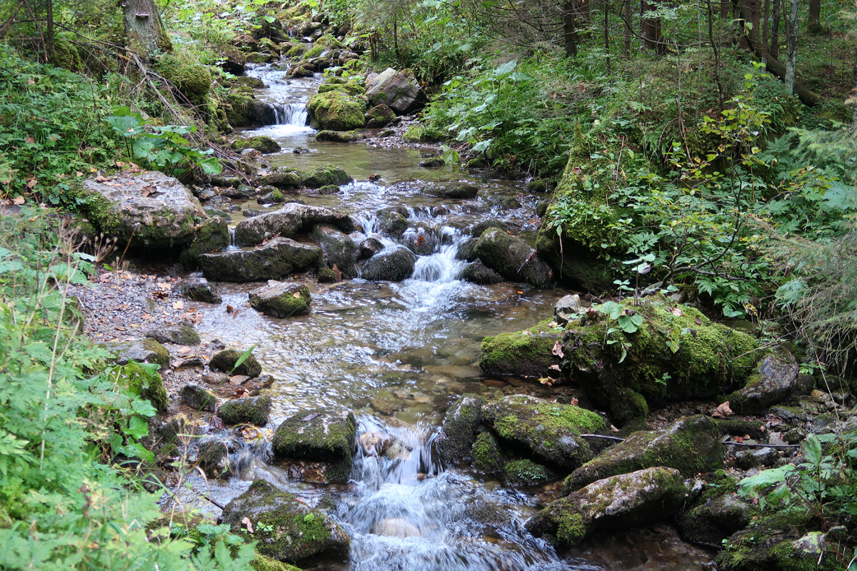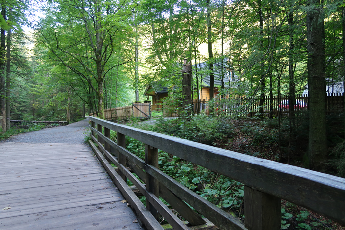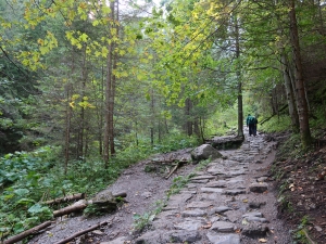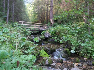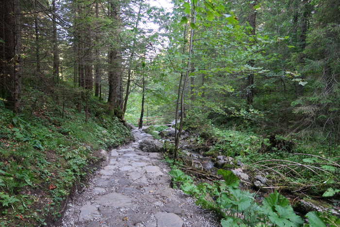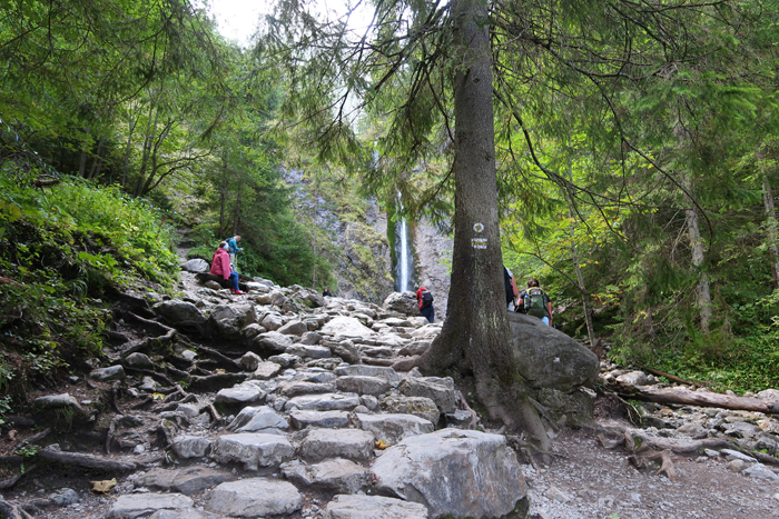 Idziemy po kamieniach, wkrótce przechodzimy przez mostek nad potokiem. Dojście do wodospadu zajmuje około 10 minut.