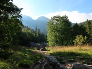 Wkrótce docieramy do Polany Strążyskiej. Stoją tu dwa szałasy oraz herbaciarnia Parzenica. Ponadto znaleźć tu możemy liczne polodowcowe głazy, z których największy nazywany jest Sfinksem.