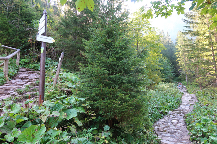 W prawo odchodzi czarny szlak Ścieżki nad Reglami. Na końcu polany rozpoczyna się krótki żółty szlak do Wodospadu Siklawica.