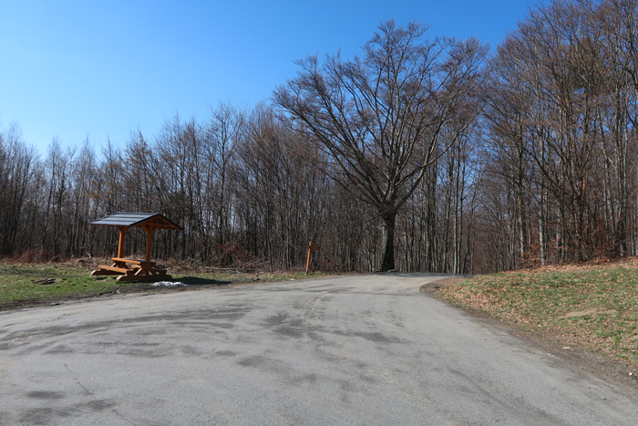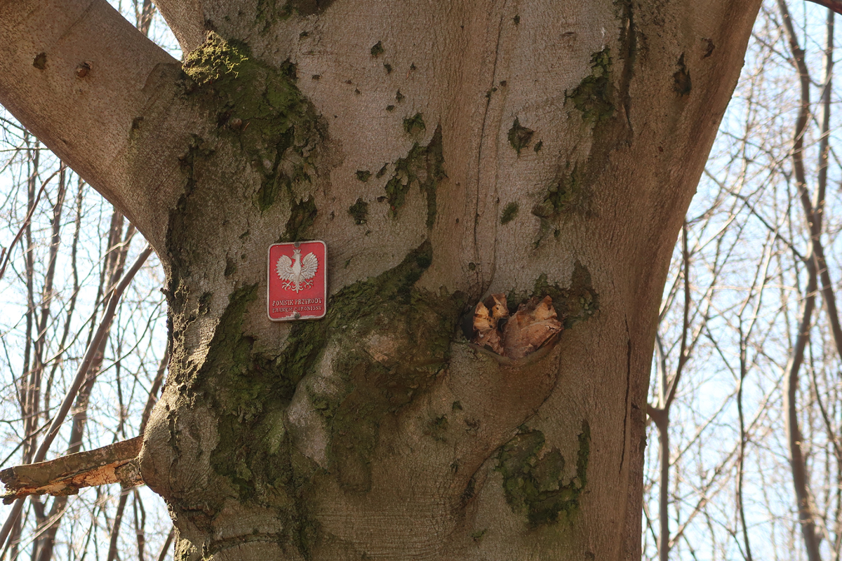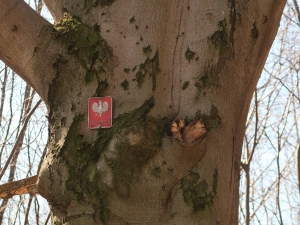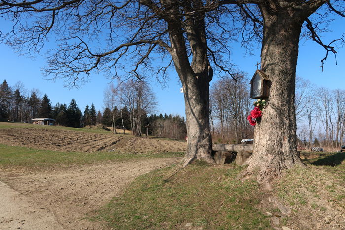Po kilkunastu minutach docieramy do wiaty odpoczynkowej. Rośnie tu również drzewo - pomnik przyrody.