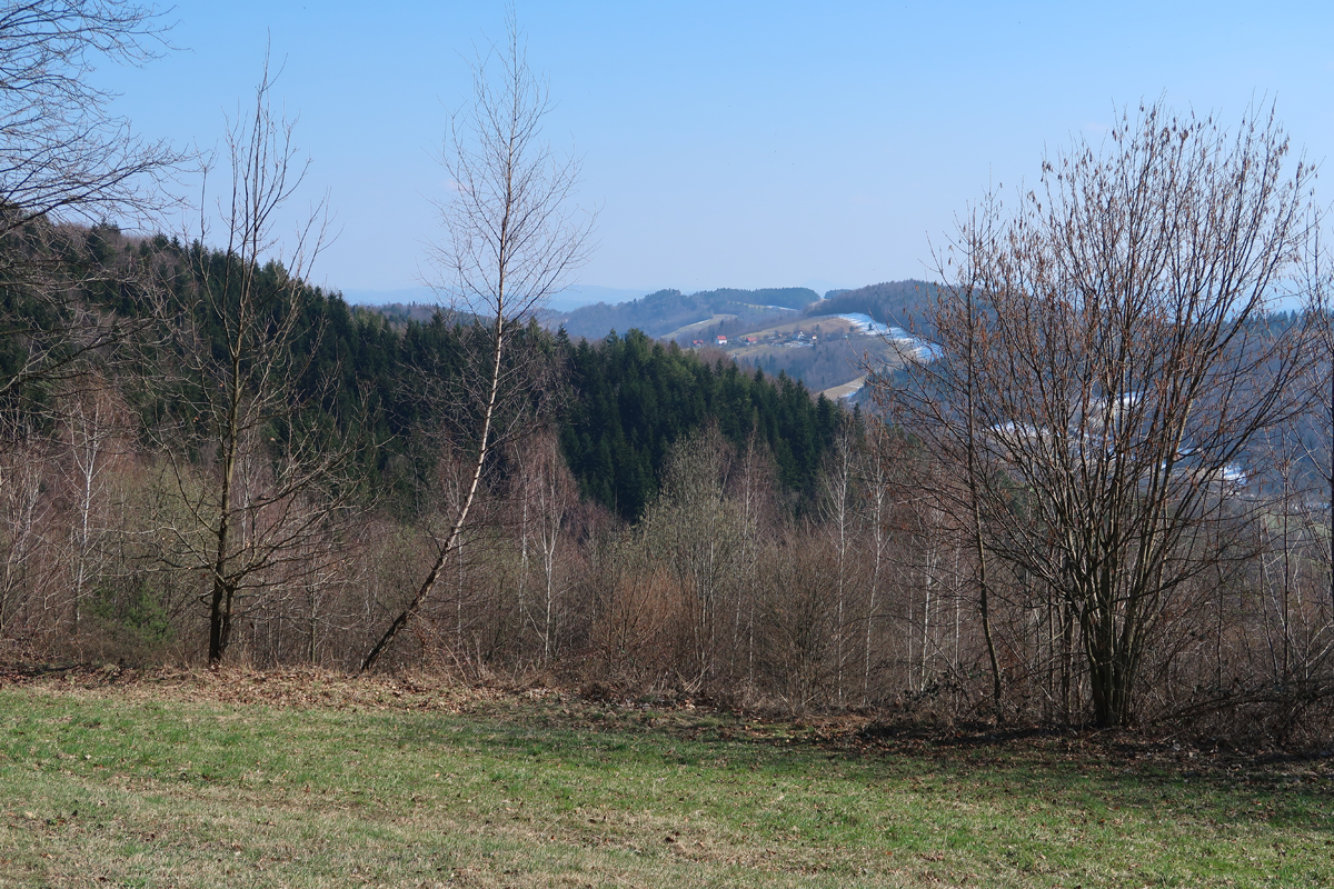 Idziemy teraz przez około 20 minut przez las, po czym wychodzimy na widokową polanę w pobliżu szczytu Kamionka.