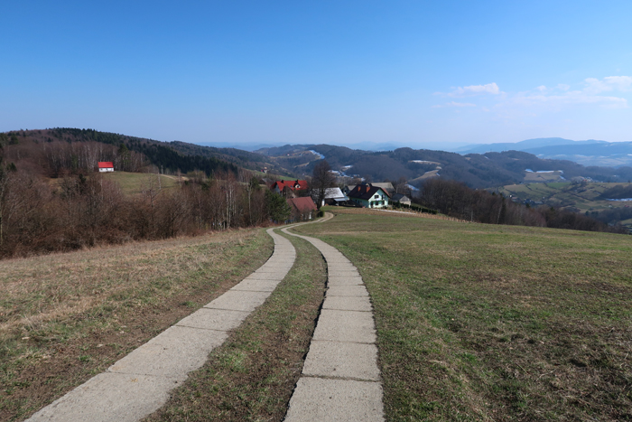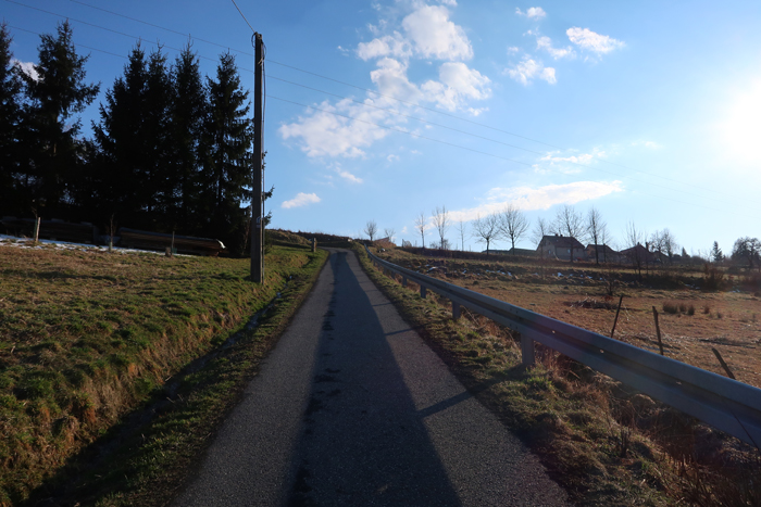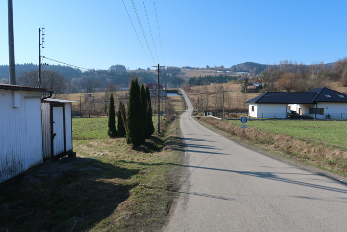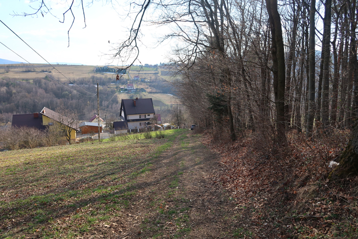 Idziemy kawałek wśród pojedynczych domostw kierując się na prawo do góry.