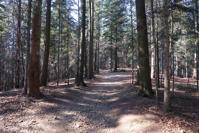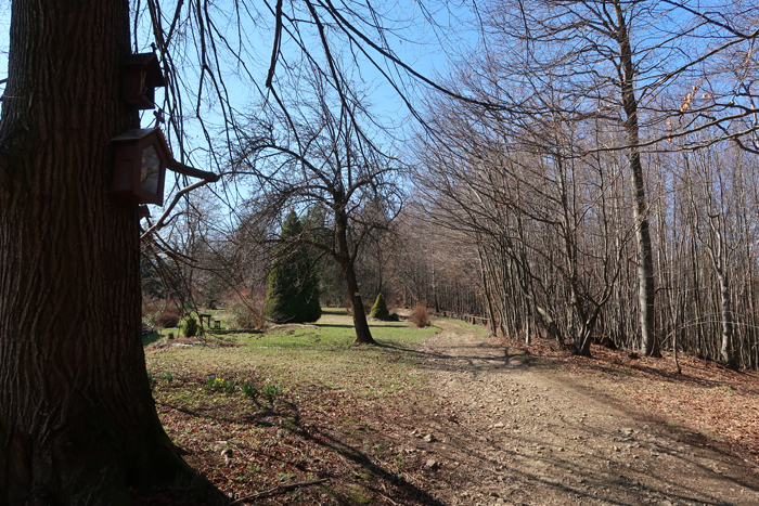 Po kilku minutach na rozwidleniu dróg skręcamy w lewą odnogę. Podchodzimy lekko pod górę.