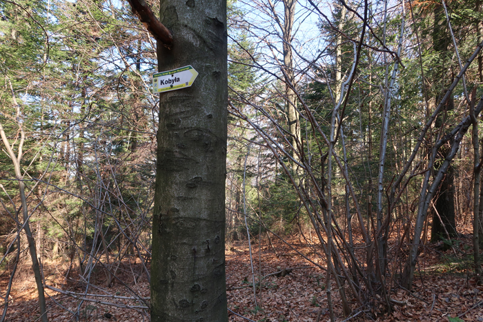 Po chwili mijamy odejście w lewo na szczyt Kobyła (605m n.p.m.). Na stokach tej góry toczyły się krwawe walki między wojskami rosyjskimi a austro-węgierskimi podczas I wojny światowej.
