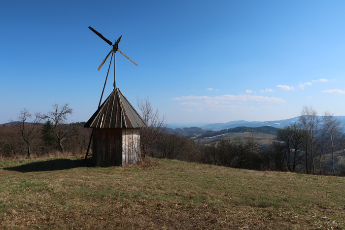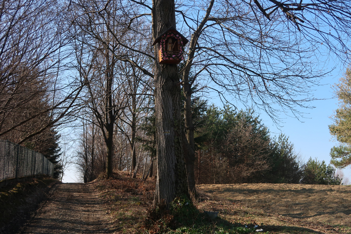 Prowadzi nas teraz znów droga asfaltowa. Mijamy najpierw kaplicę Miłosierdzia Bożego a po chwili stary młyn wiatrakowy.