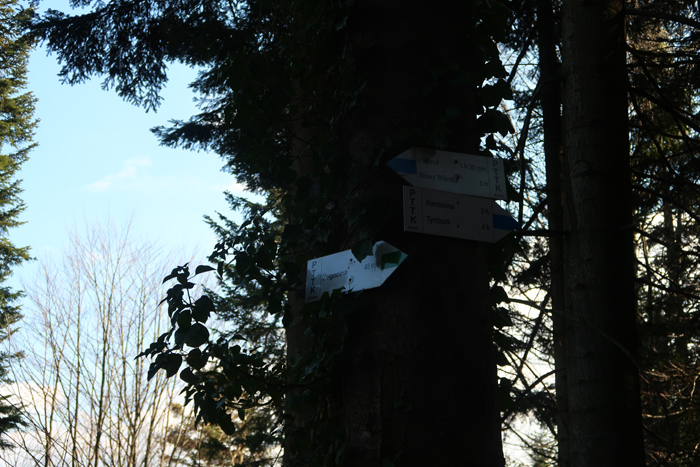 Docieramy do skrzyżowania szlaków. Rozpoczyna się tu zielony szlak do Żegociny. My podążamy dalej szlakiem niebieskim.