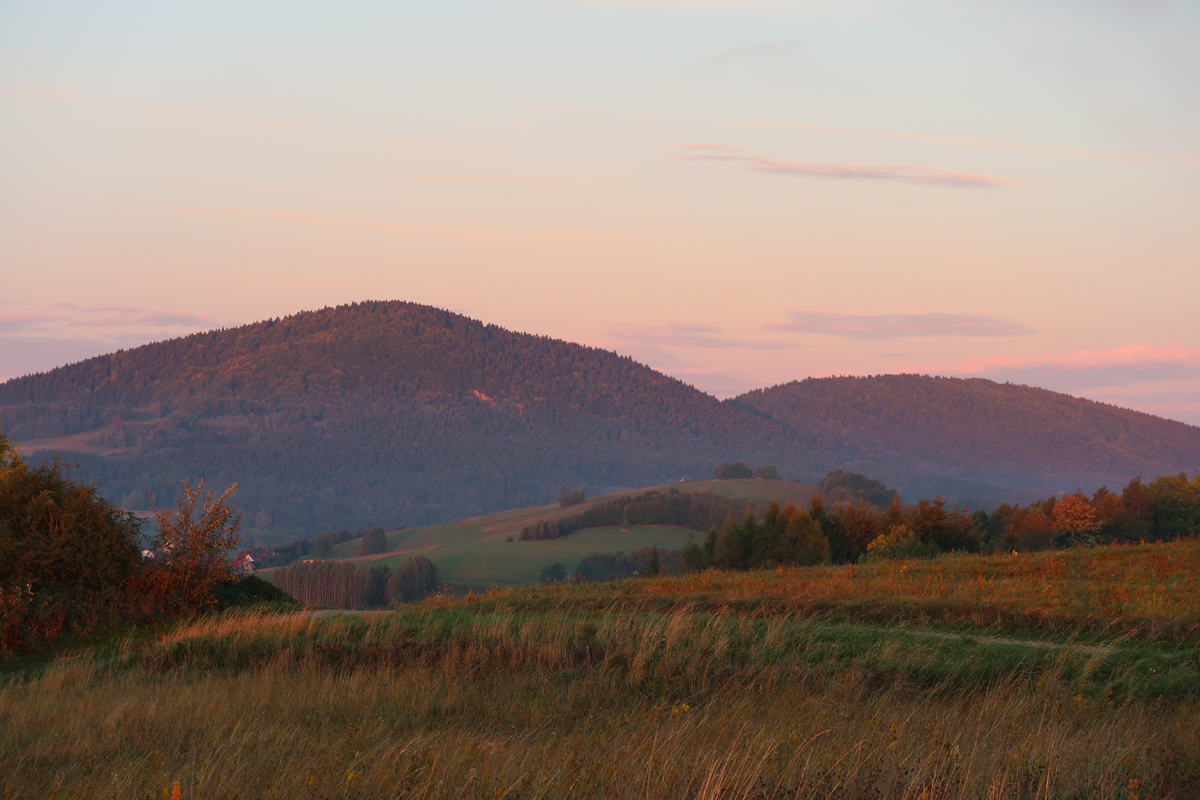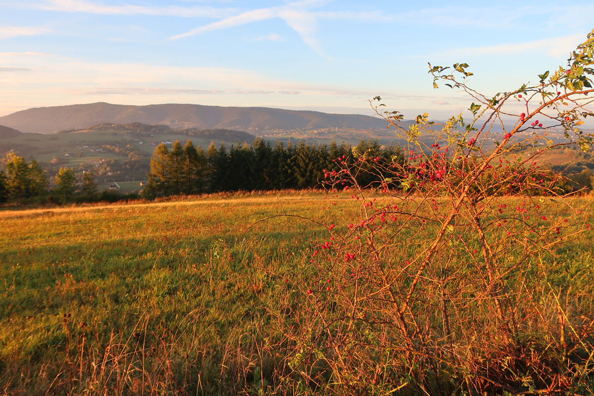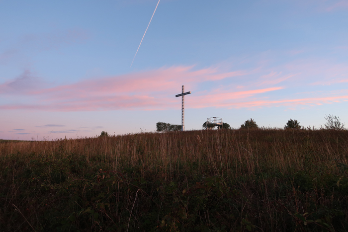 Po około godzinie wędrówki widać już nasz cel czyli Wojciechową Górę (555m n.p.m.) z platformą widokową i metalowym krzyżem.