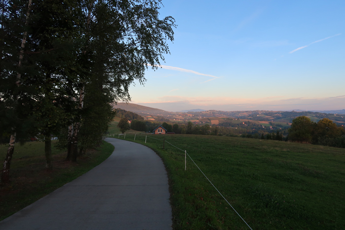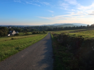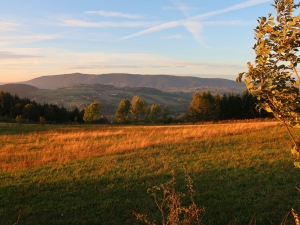 Nadal pniemy się pod górę łąkami. Z wózkiem jest trochę ciężko (tylko wózek na dużych kołach da radę) bo to najtrudniejszy odcinek pod górę.