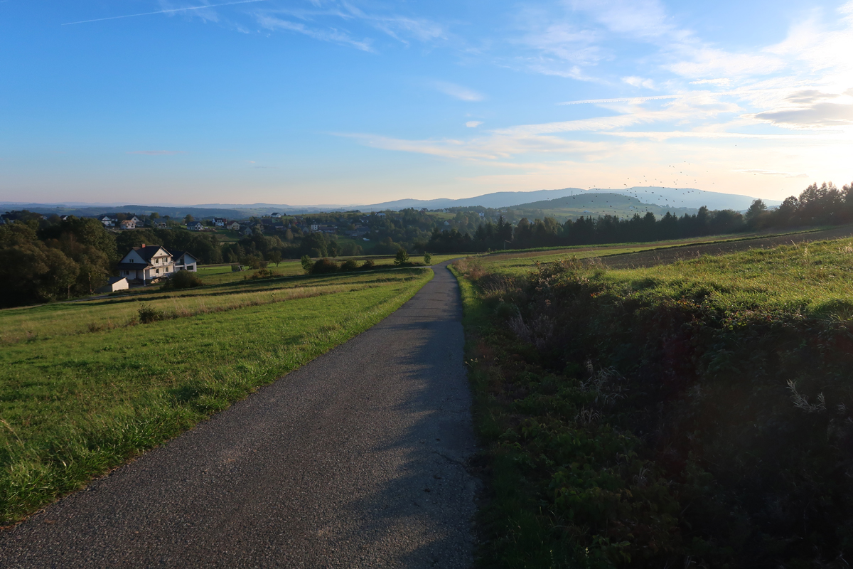 Po około 10 minutach i dotarciu do domostw skręcamy w prawo i kontynuujemy asfaltową drogą prowadzącą w kierunku Siołkowej.