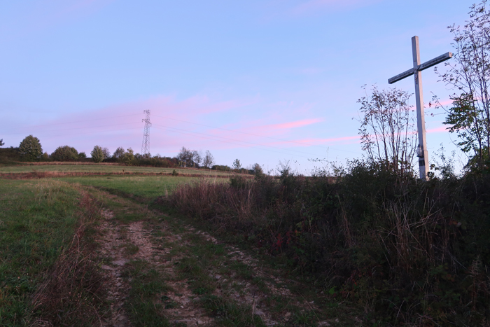 Po prawej stronie mijamy krzyż i dalej pniemy się pod górę.